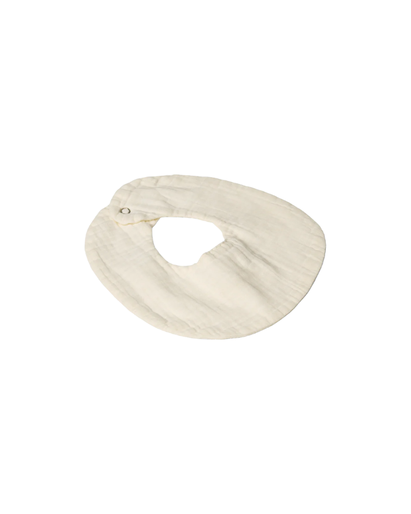 Lubilu muslin hagesmæk i cream. Hagesmækken er lavet af 100% økologisk bomuld med dobbelt lag og nikkelfrie trykknapper.